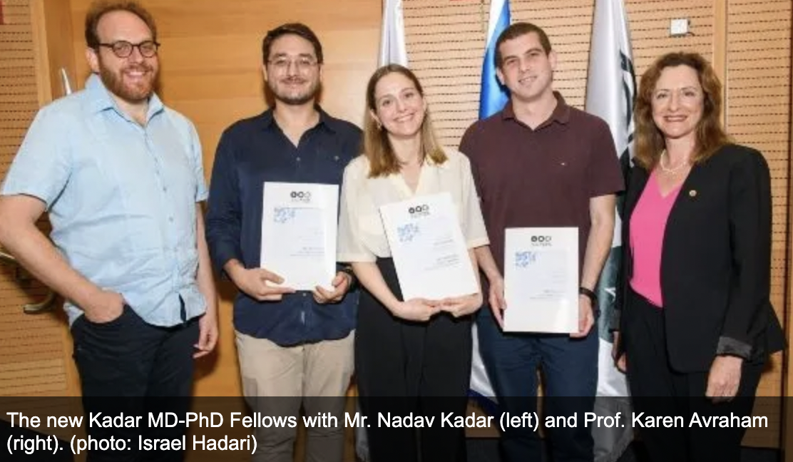 The Naomi Prawer Kadar MD-PhD Fellowship Fund supports outstanding students at Tel Aviv University’s Gray Faculty of Medical and Health Sciences who wish to combine clinical training with advanced research. The fellowship enables medical students to earn both an MD and a PhD, preparing a new generation of physician-scientists driving innovative medical research in Israel.